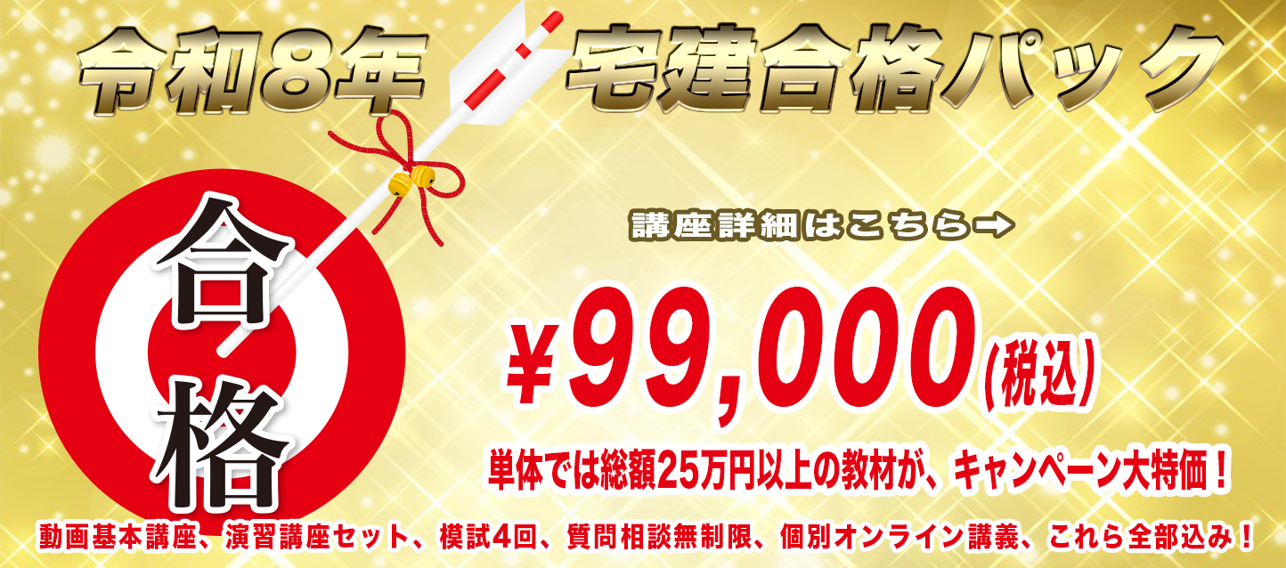 万が一、受験できない事情が出来てしまっても、保険として翌年も宅建合格パックを受講いただけます。もしものときも安心だね♪